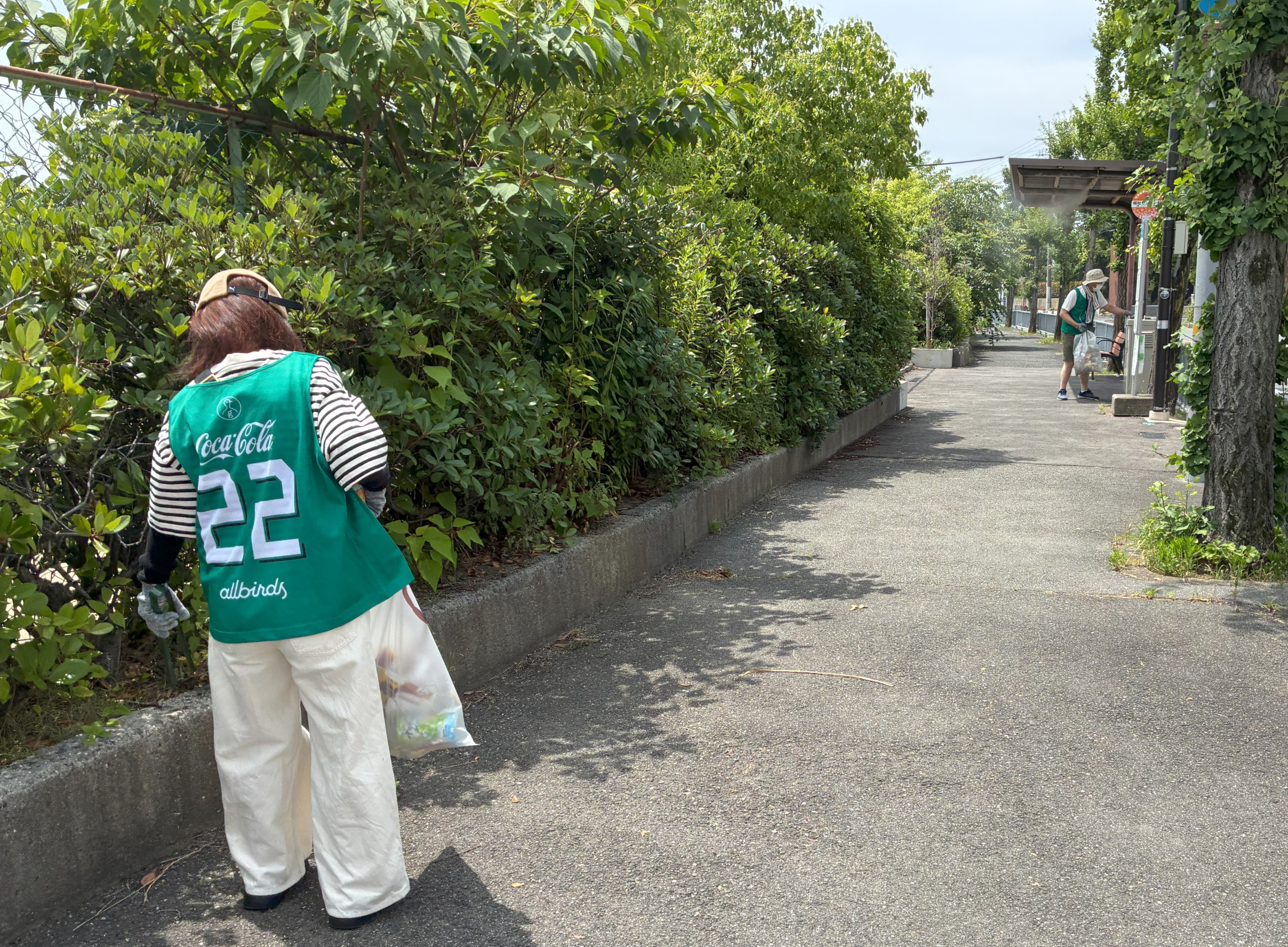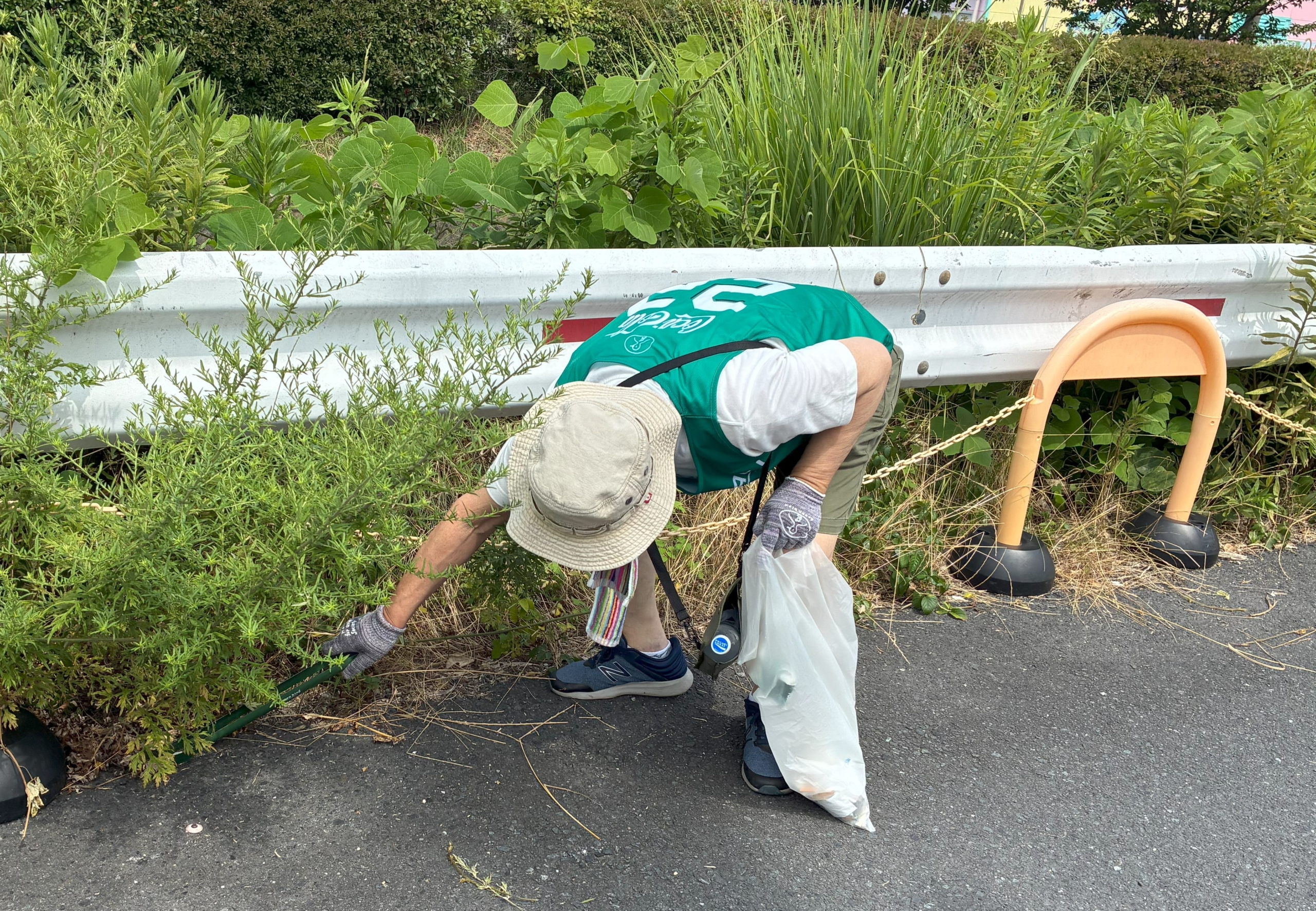 今日はベテランさん4人と新人1名の計5人で市立公民館周辺のおそうじをしました。暑い日が続いているので、熱中症には注意してもらい、無理のないように各自のペースでごみ拾いをしていただきました。