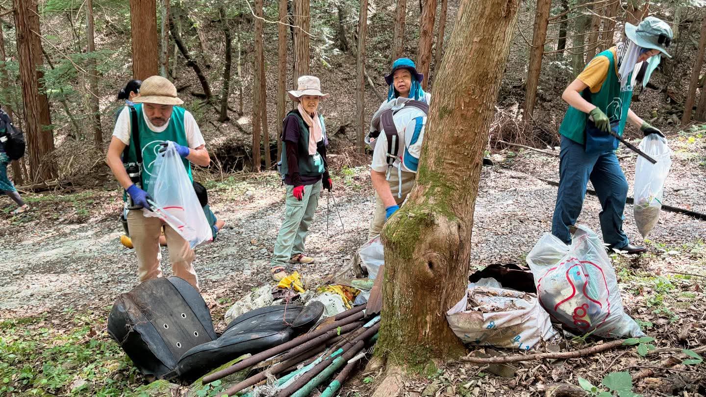 地域の人たちで運営する水眼の会や、天竜川流域各地から集まった総勢80名近くのみなさんと拾ったゴミは軽トラ山盛りとなった。
