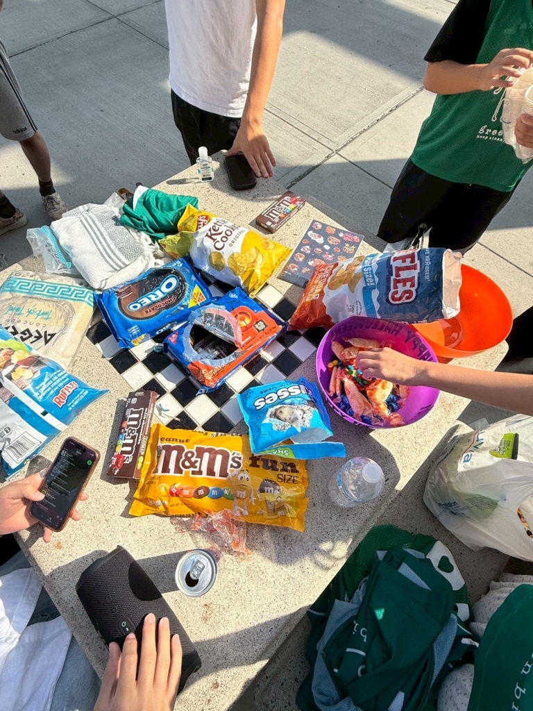 Everyone brought their own snacks, and the table was filled with all kinds of sweets —