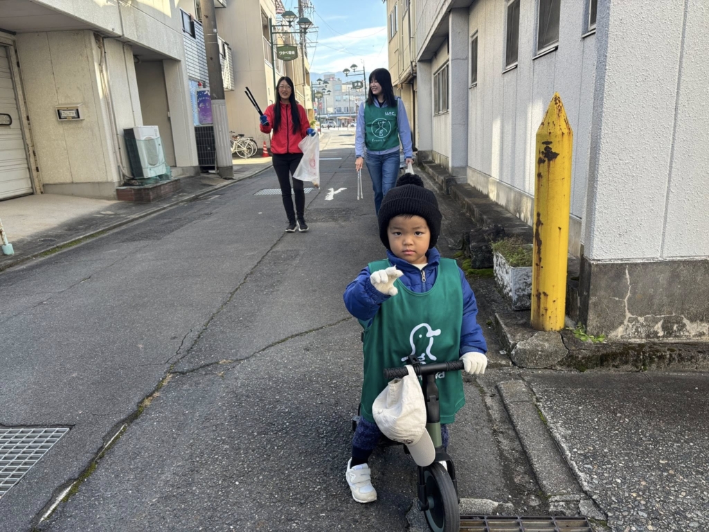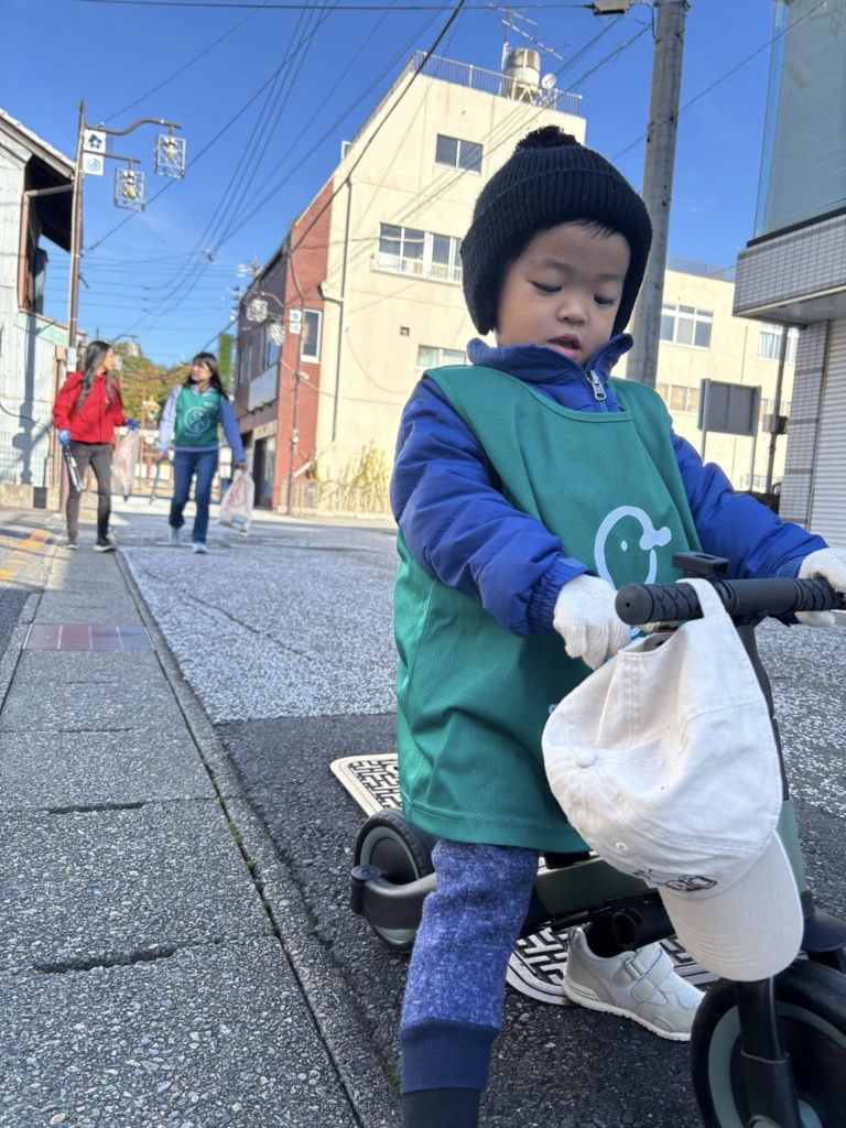 そして今日は、3歳のリトルメンバーも道中ずっと参加してました!キックバイクにまたがりながら、真剣な表情で通りのゴミをチェック。こうやって子どもが自然と街を大切にする姿勢を身につけていってくれると嬉しいです。
