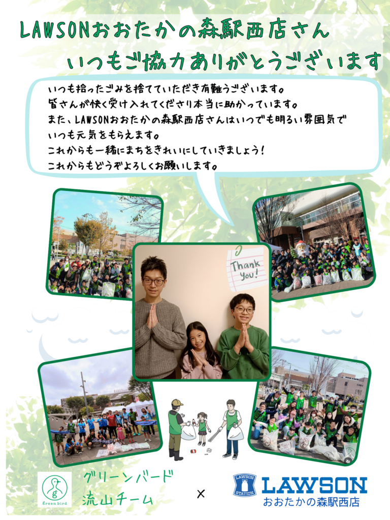 また、いつもごみを捨てさせてもらっているローソンおおたかの森駅西店さんに感謝のカードを渡しました。