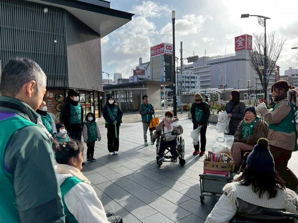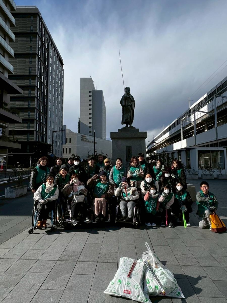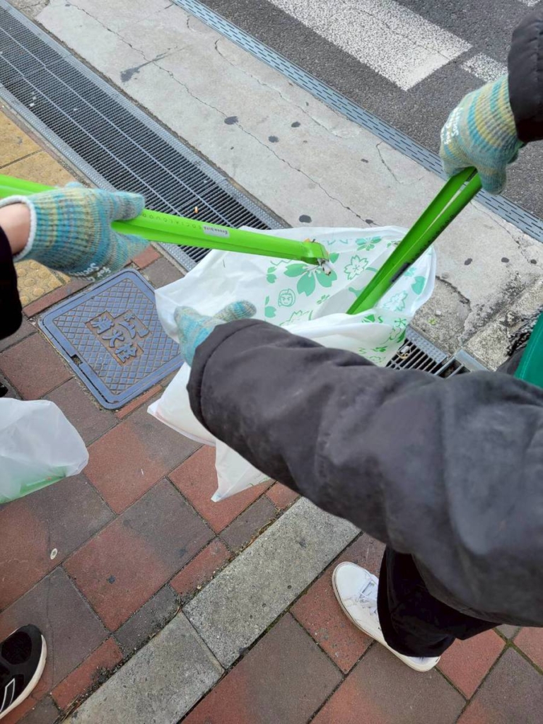 活動の中で「子供の目線」や「車椅子の目線」だからこそ見つけやすいゴミもたくさんありました。大人の目線では見落としがちな歩道の隙間や植え込みの下など低い位置にあるゴミを見つけては「そこにあったんだ」とみんなで声を掛け合いながら拾う場面もありました。それぞれ違う目線があるからこそ、街の見え方も変わり活動がより豊かになることを改めて感じた新年初の掃除でした。