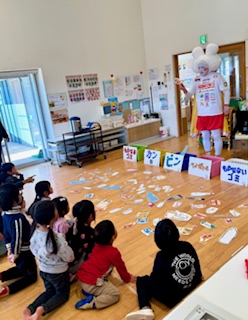 ゴミ拾いが終わるとじゃんけんマンの分別ゲームを開催!