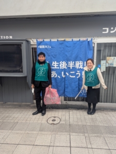 お日さまもあまり顔を出さず寒さを感じる中でしたが、アーケード内ですれ違う方から「寒いのに頑張ってるね」と声をかけていただき、その一言に元気をもらいながら活動を続けました。