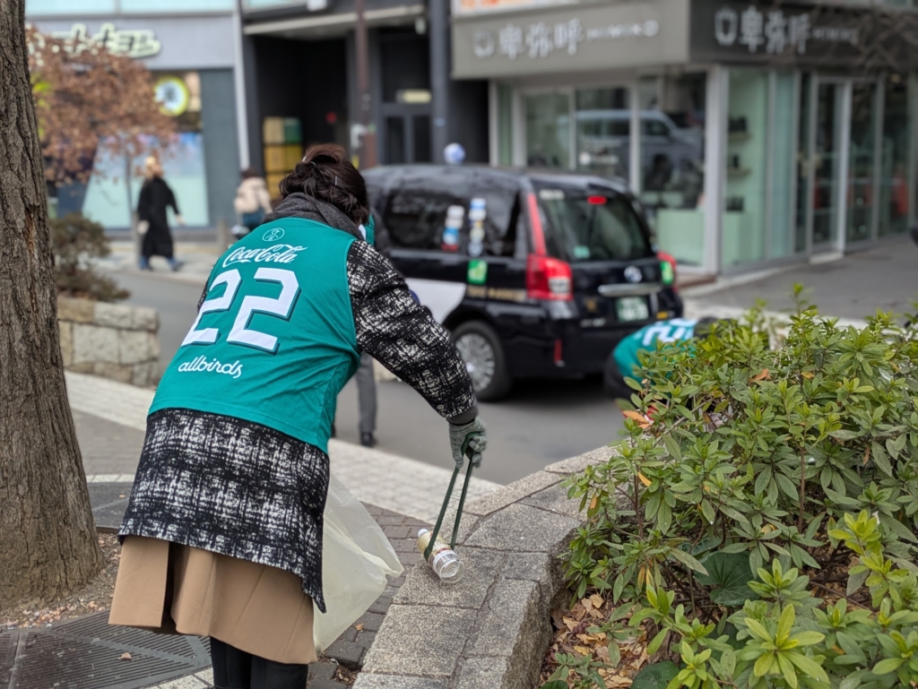 みんなでトングを上手く使いこなしながら、植栽の隙間に手を伸ばして、ゴミを拾いました。