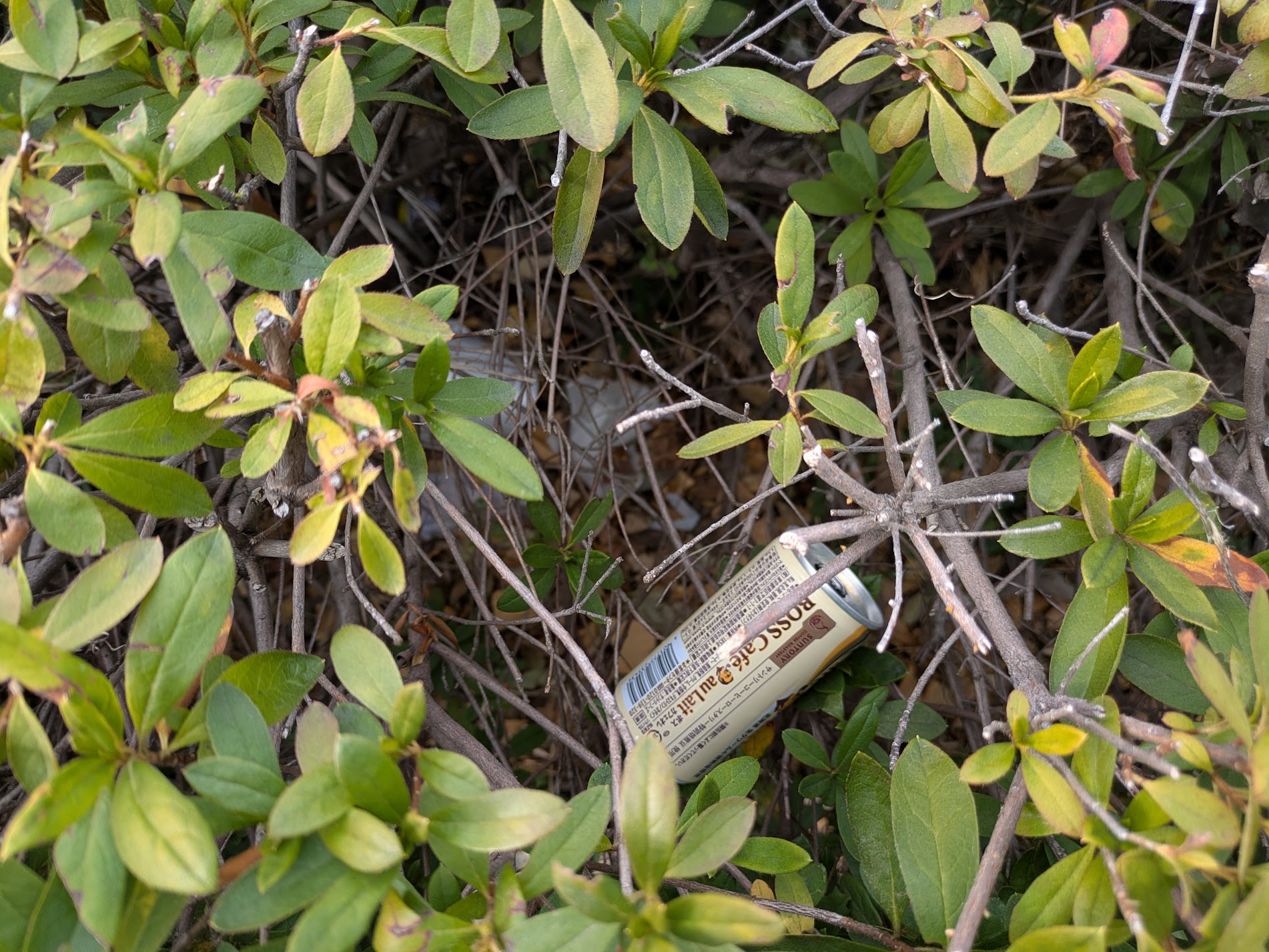 植栽の中を覗き込んでみると、タバコの吸い殻やビニール、飲料ごみなどがたくさん隠れています。