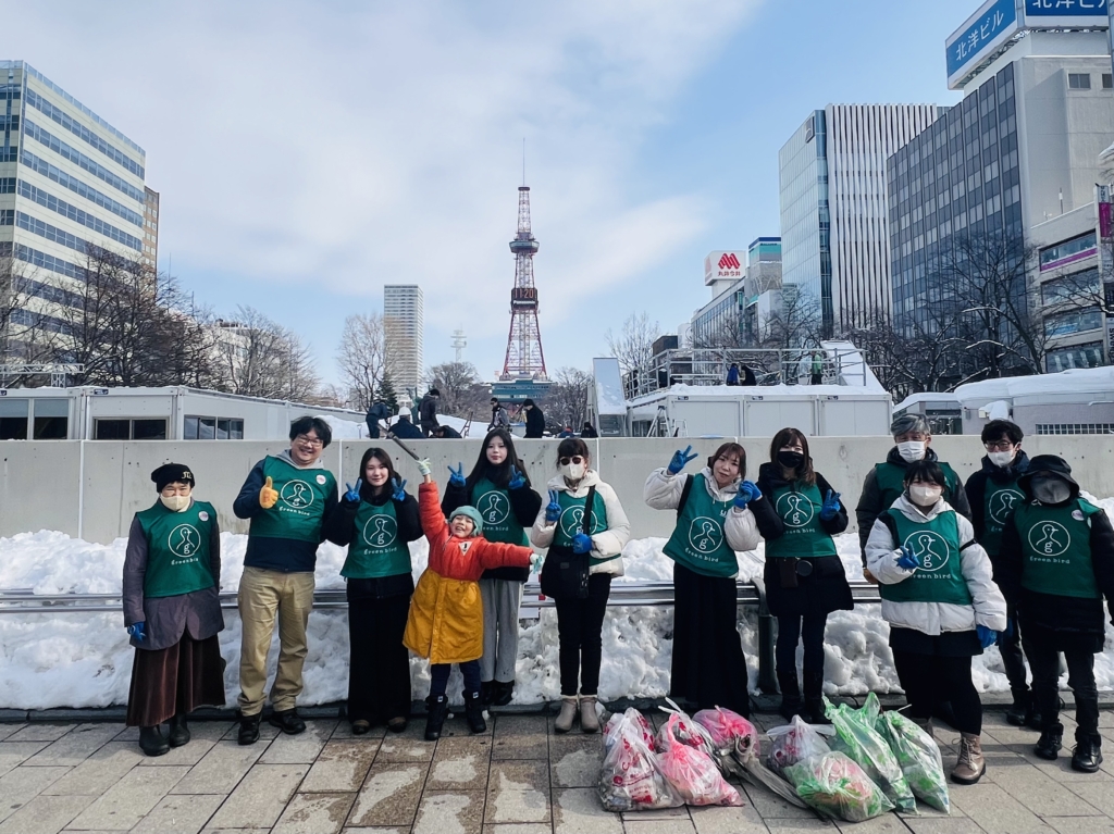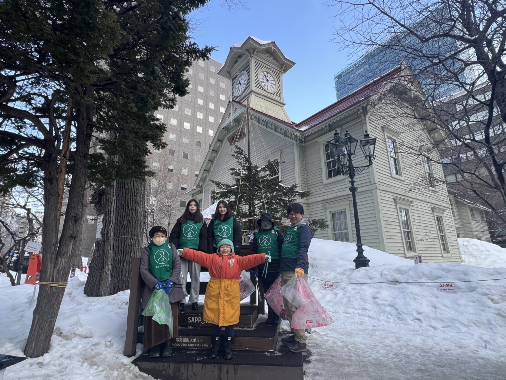 最後は、雪まつりの会場撤去が進む大通公園前でパチリ!皆さま、寒い中お疲れ様でした〜⭐︎