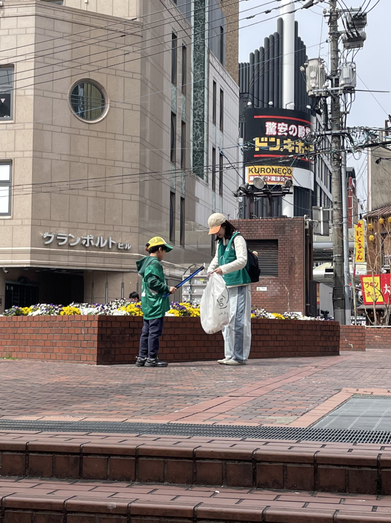 至る所で桜が咲いていて春を感じる心地の良い時間にカミハチまちなかおそうじを実施しました。