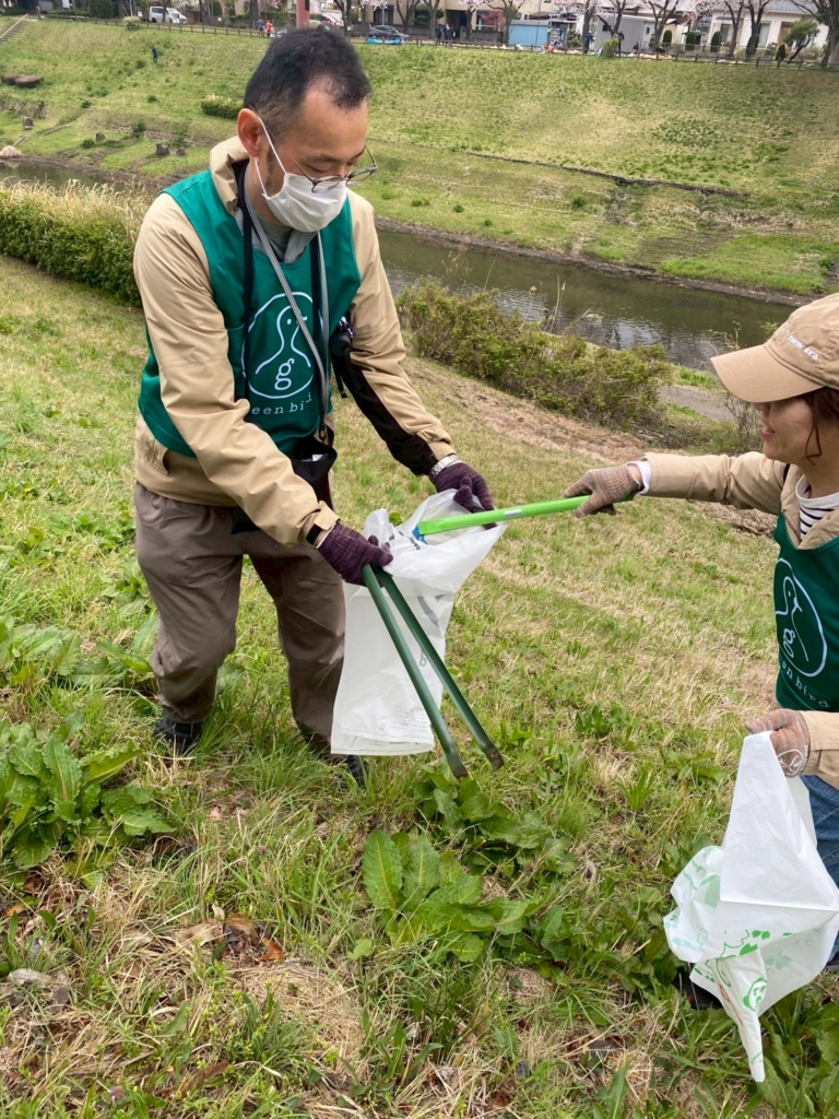 川の近くでゴミ拾い。