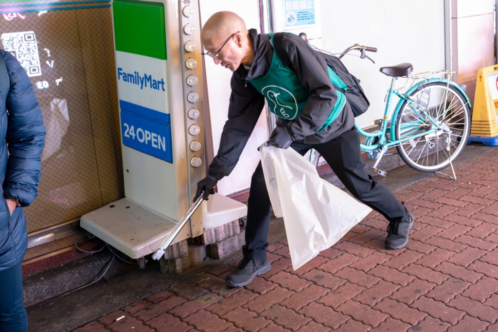 トングを持って、道路の隅々まで丁寧に拾ってくださっています。こういう地道な作業の積み重ねが、街をきれいにしていくんですよね。
