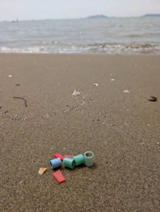 海岸にはたくさんのゴミが漂着していましたが